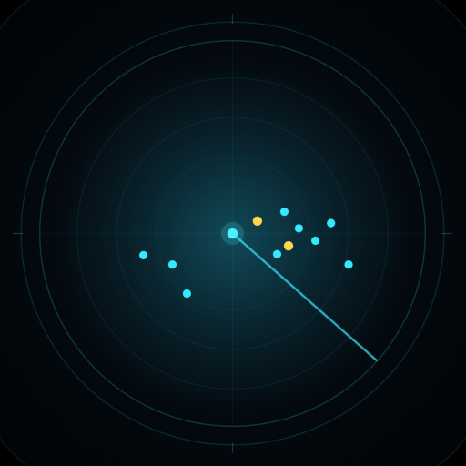 A real-time visitor radar for your website. Watch visitors light up as the scanner sweeps across the map.
